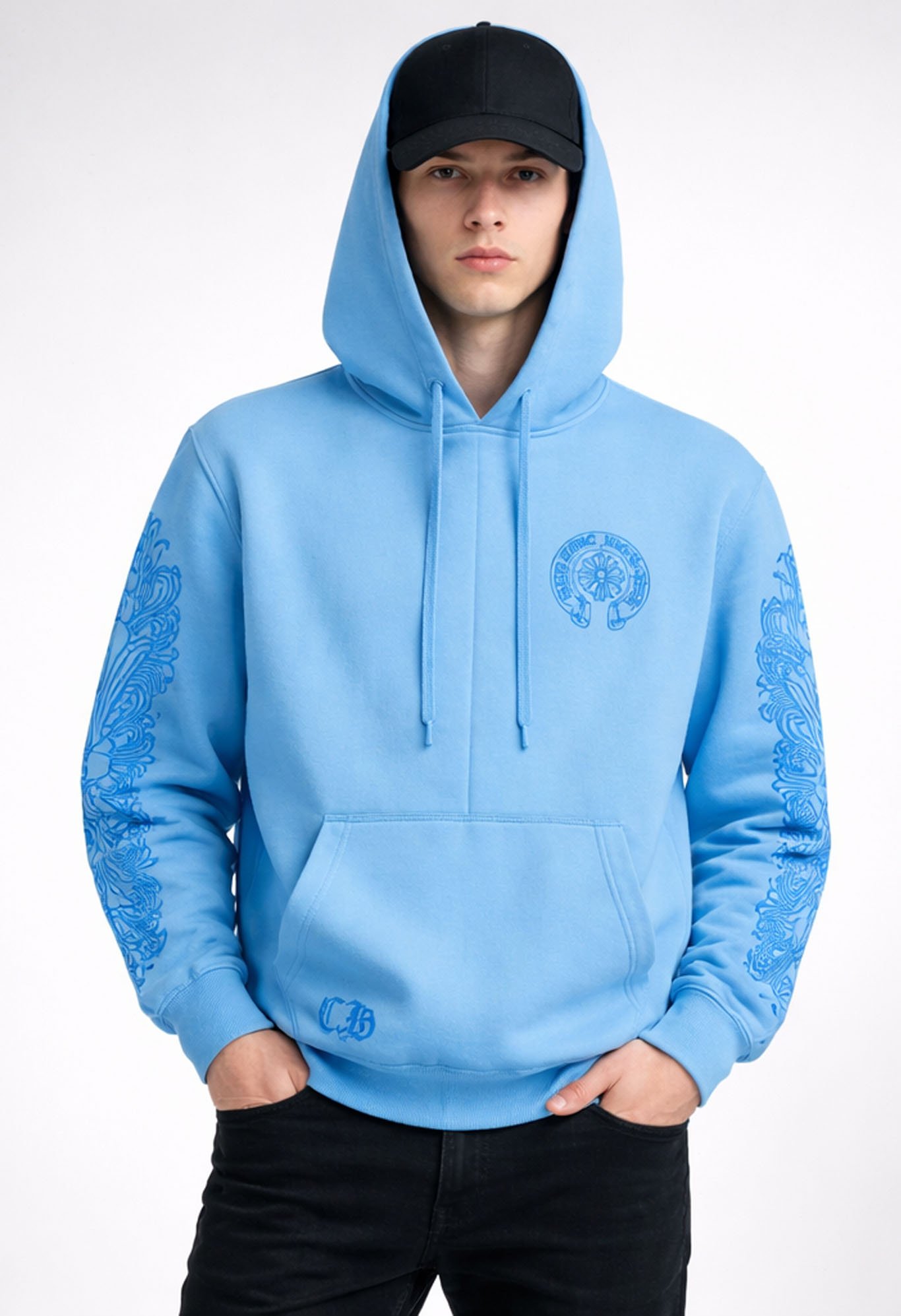 The Blue Chrome Hearts Hoodie embodies the perfect blend of sophisticated luxury and rebellious street culture. Known for its bold distinctive design Chrome Hearts represents craftsmanship and attitude. Guess what? This jacket embodies the brand’s signature aesthetic – modern sexy and effortlessly cool making it a must-have for those who move with confidence and style. The Blue Chrome Hearts Hoodie is made from premium heavyweight cotton with a soft yet durable feel perfect for all-day comfort and style. The classic blue color combined with the Chrome Hearts branding and distinctive cross motifs help you stand out in any crowd. Subtle details like the oversized fit and drawstring hood create a laid-back street look while maintaining a luxurious elevated look.