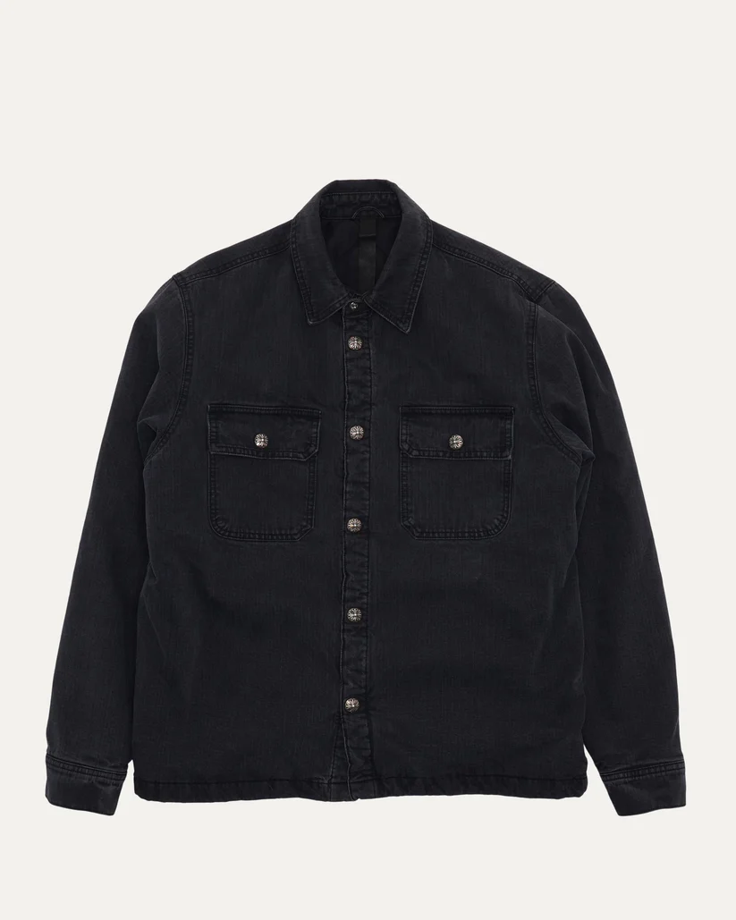 Chrome Hearts Canvas Work Dog by Chrome Hearts is a luxury outerwear piece that merges rebellious streetwear with premium craftsmanship. Designed with a reversible build, it offers two bold looks in one — one side showcasing Matty Boy’s iconic “Flaming Youth” artwork, the other side featuring a more understated Chrome Hearts design. This jacket reflects the brand’s signature blend of edgy graphics, gothic detailing, and timeless construction, making it a standout piece in any modern wardrobe.