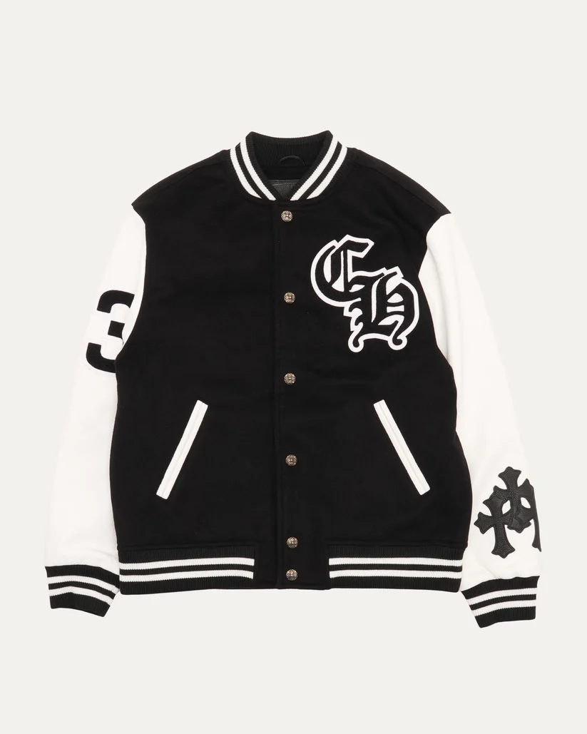 Home Clothing Chrome Hearts Cashmere and Leather Varsity Chicken Jacket
