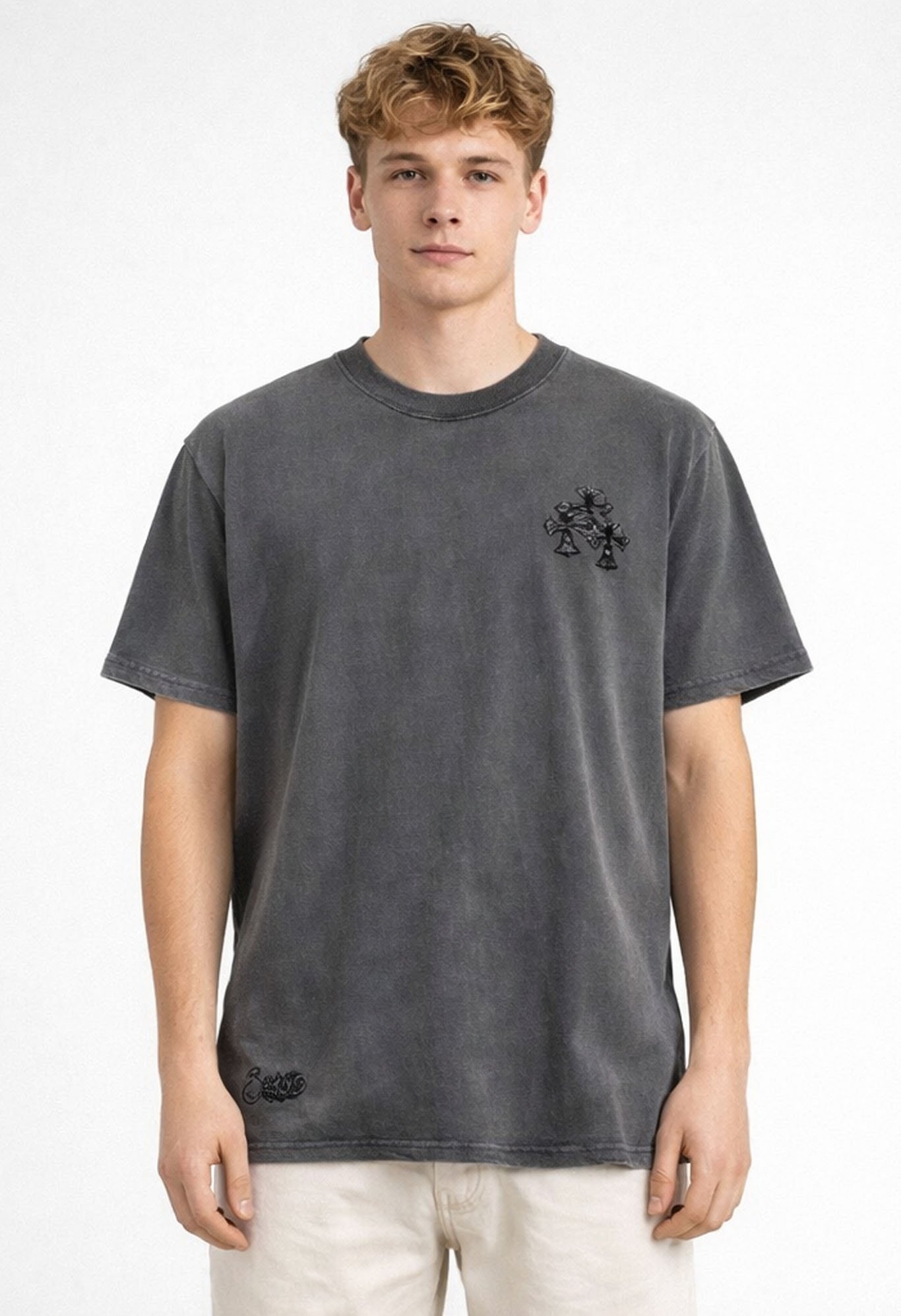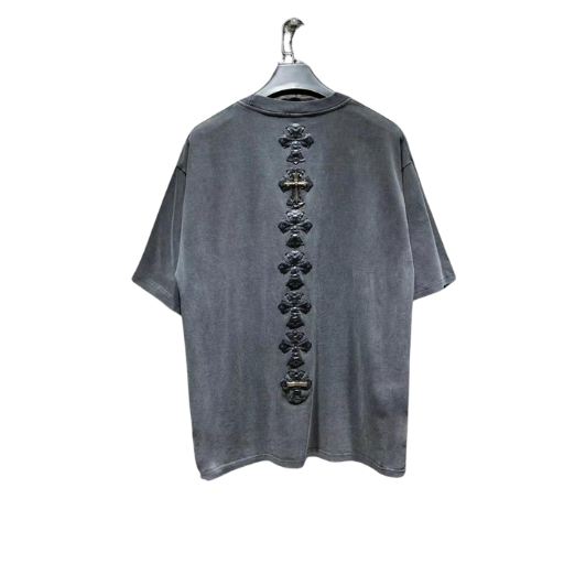 The Chrome Hearts Gray T-shirt is a premium staple that blends luxury craftsmanship with bold streetwear aesthetics. Made from heavyweight 100% cotton, it delivers unmatched comfort with a relaxed, slightly oversized fit that speaks to Chrome Hearts’ signature edge. Featuring the iconic cross logo in striking detail, this piece embodies the brand’s rebellious spirit while remaining versatile enough for everyday wear.