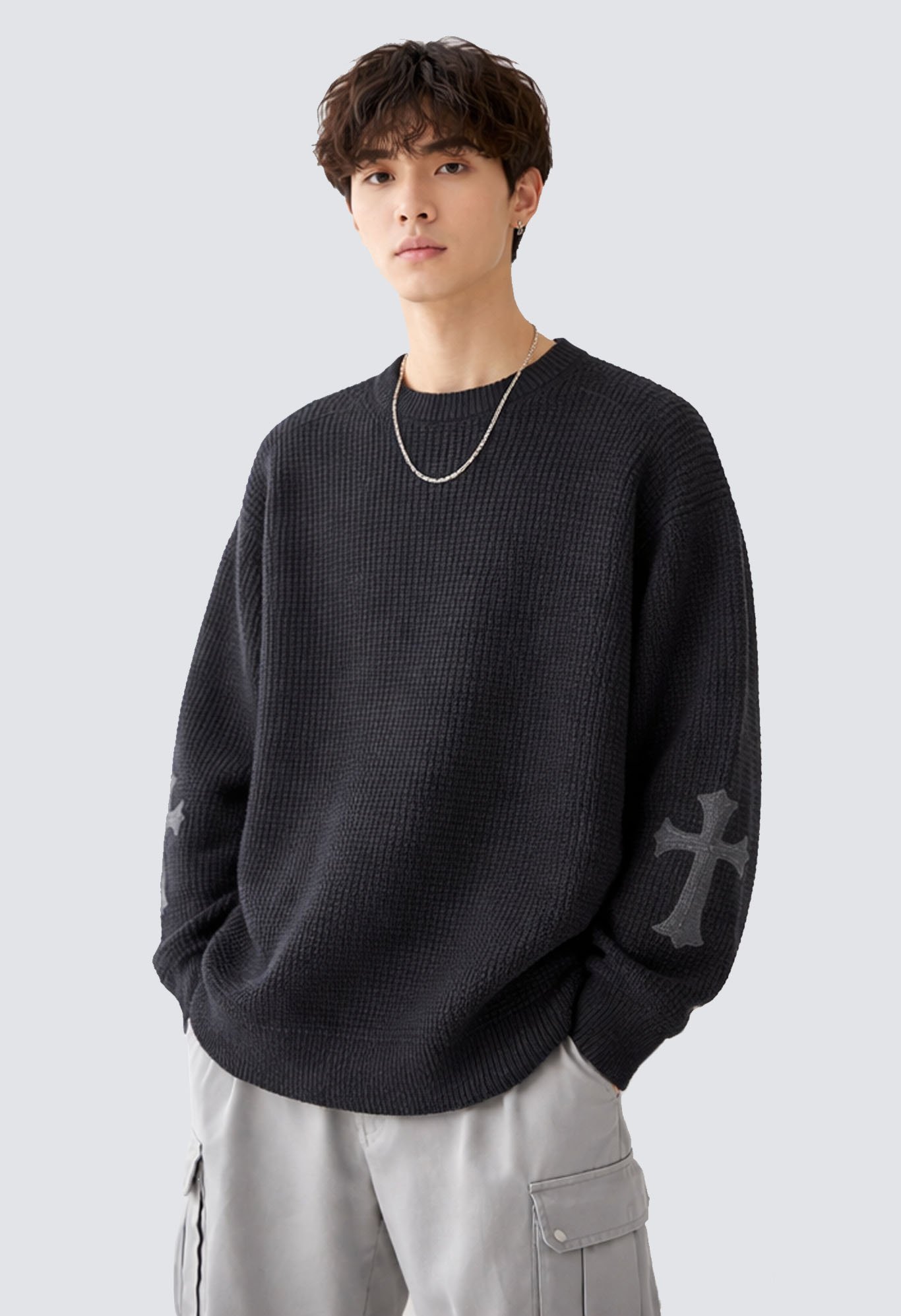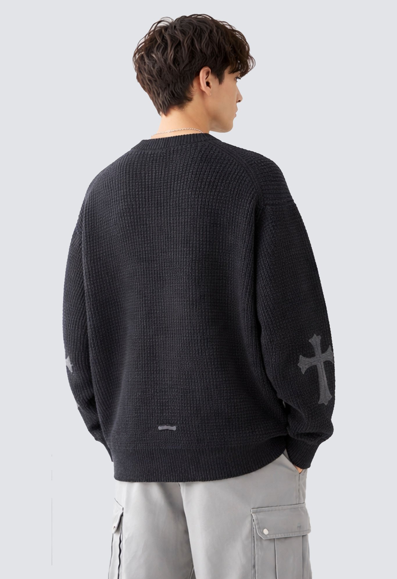The Chrome Hearts Leather Cross Patch Cashmere Sweater combines luxurious craftsmanship with the bold, rebellious style the brand is known for. Designed for those who value superior quality and unique streetwear style, this jacket delivers the perfect blend of comfort, edginess, and everyday versatility. Made of soft, high-quality knitted materials, it provides warmth without sacrificing breathability, making it ideal for year-round wear. Chrome Hearts’ iconic motifs, such as gothic lettering, cross-stitch detailing, and signature logos, add a signature touch that sets this piece apart from ordinary jackets. With its elegant design and sophisticated embellishments, this sweater will easily brighten up any outfit, whether dressed up or casual.