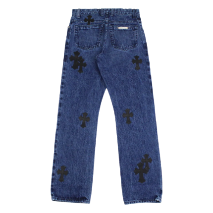 Chrome Hearts Cross Leather Patches Jeans