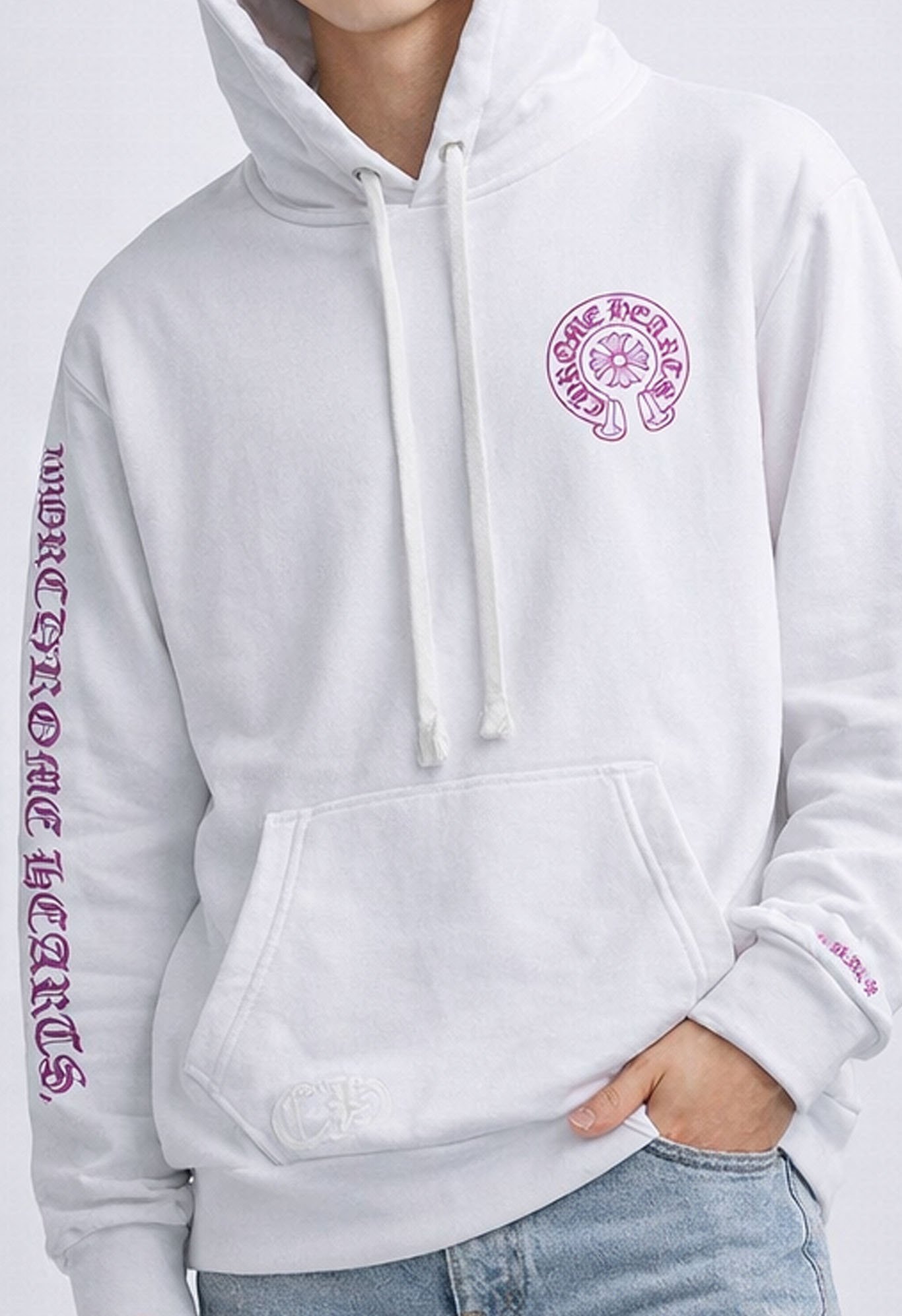 This hoodie is made of premium heavyweight cotton and has a soft yet durable feel, making it ideal for all-day comfort and a refined look. The classic white colourway, combined with Chrome Hearts branding and signature cross motifs, will help you stand out in any crowd. Subtle details like the oversized fit and drawstring hood give it a relaxed, street-ready vibe while maintaining a premium, elevated look.